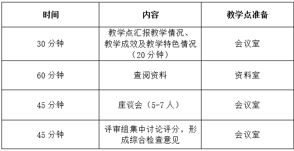 校外教学点检查采取评审组审阅材料和现场检查方式。
