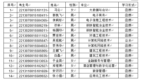 为规范函授教育学籍管理工作,督促学员能够按时报到注册,保证学员学习的时效性,根据《河北工业职业技术大学函授教育学籍管理规定》的要求,决定对2023级已录取但未按时报到、缴纳学费的学员取消入学资格,现将邓林等14名学生信息予以公示,如10个工作日内仍未与我校主动取得联系,将不予注册该部分学员的学籍。具体名单如下: